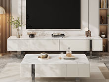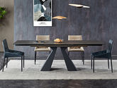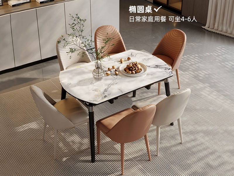 洛萨 现代 碳素钢架子+雪山石岩板 1.6米 拉伸 功能 长餐桌
