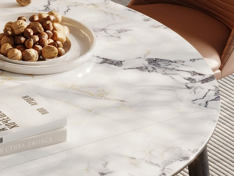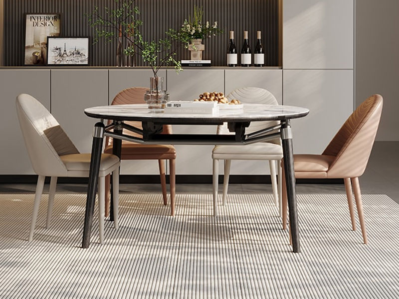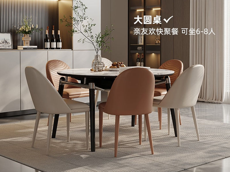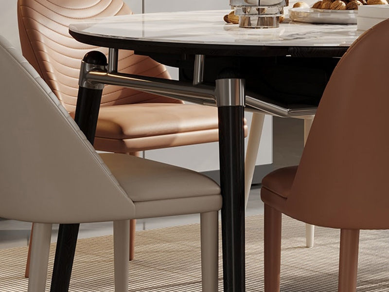 洛萨 现代 白蜡木+香奈儿岩板面 1.3米 拉伸 功能 圆餐桌