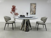 洛萨 现代 不锈钢黑钛+ 哑光岩板面+底板+转盘 1.35米餐桌¥1639