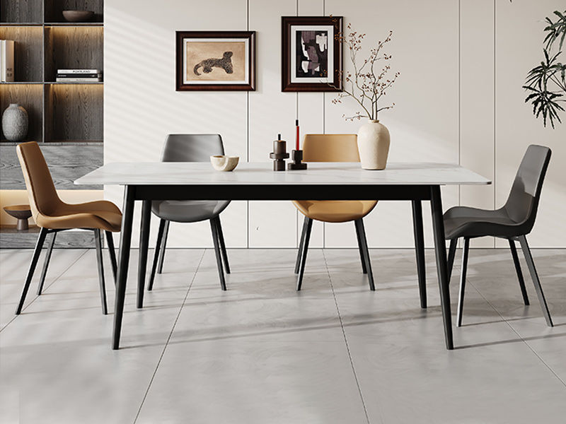 洛萨 现代 碳素钢架+哑光岩板面+底板 1.4米 长餐桌