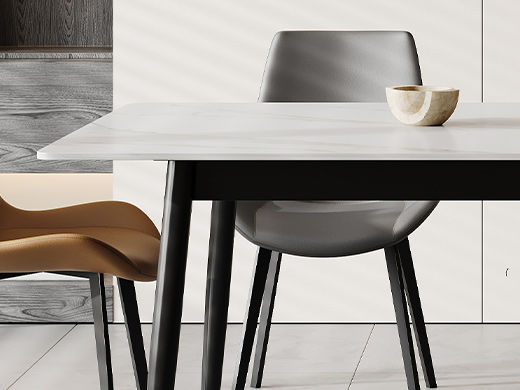 洛萨 现代 UV打印鱼肚白面板+岩板+碳素钢脚带底板 1.4米 长餐桌¥3005