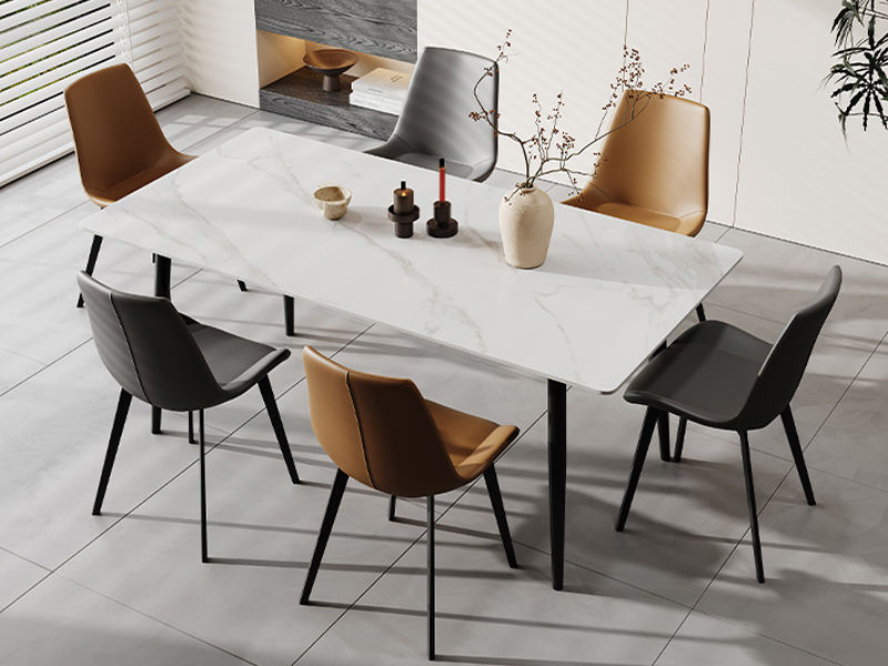 洛萨 现代 碳素钢+哑光岩板面+底板 1.4米 长餐桌