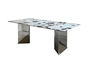 贝斯solo 网红 极简 不锈钢脚架+加厚边海蓝宝石奢石桌面 方形 1.6米 奢石餐桌¥5480