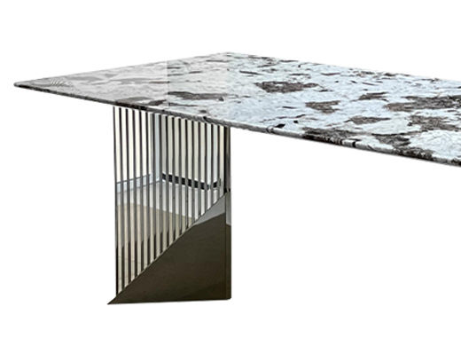 贝斯solo 网红 极简 不锈钢脚架+加厚边雪山飞狐奢石桌面 方形 1.6米 奢石餐桌¥4546