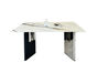 帝幔佧 极简 熊猫白超晶石+不锈钢架子+木纹 1.4米 长餐桌