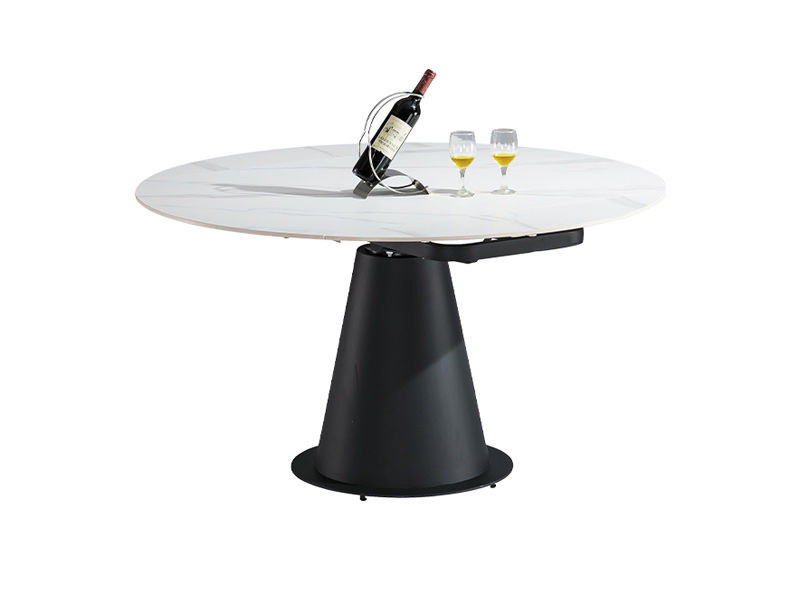小红书系列 极简 岩板+功能件+黑砂碳素钢 1.35米 拉伸 功能 圆餐桌