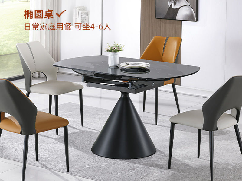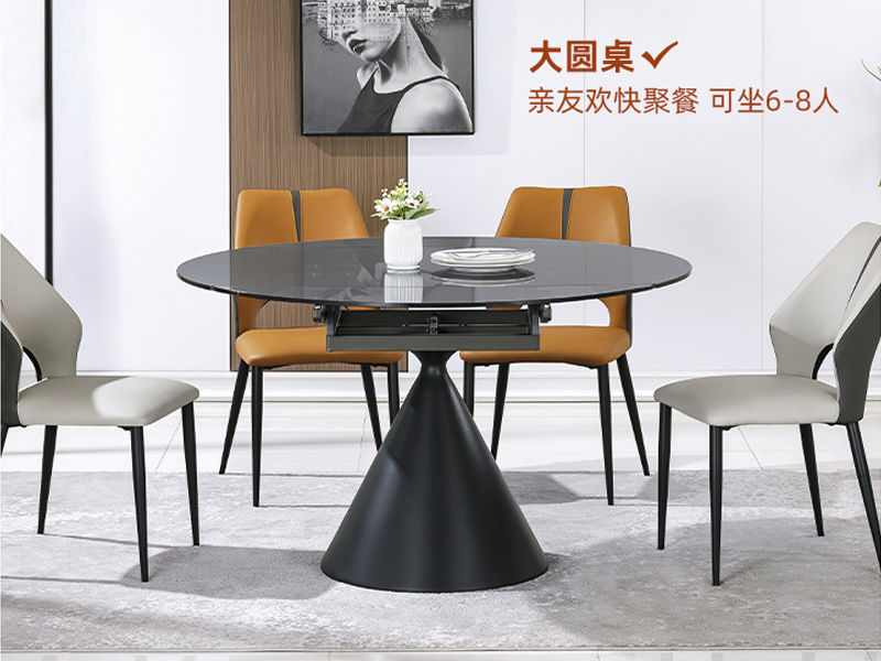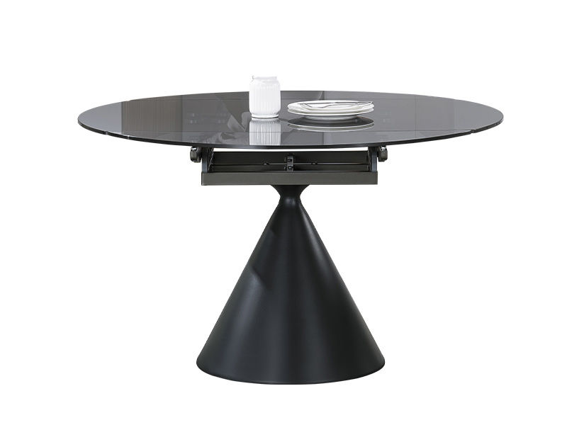 洛萨 现代 欧洲灰钢化玻璃+碳素钢裙子底座 1.3米 拉伸 功能 圆餐桌