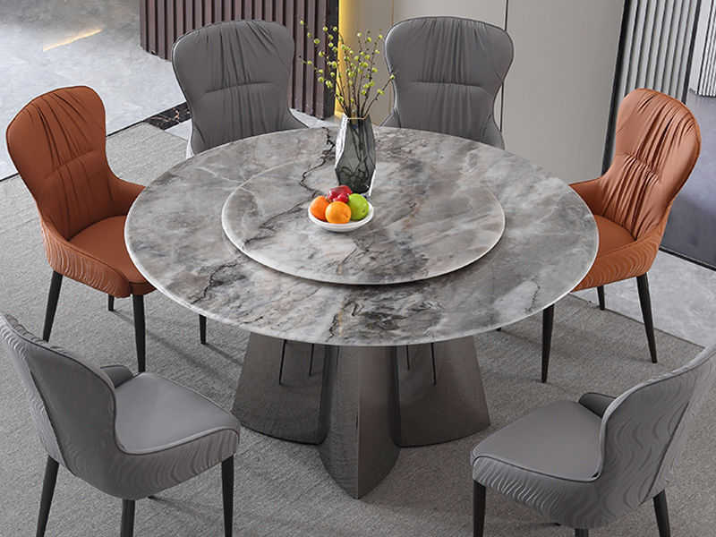 小红书系列 极简 奢石奥利奥灰+A890不锈钢底 1.3米 圆餐桌(含转盘)