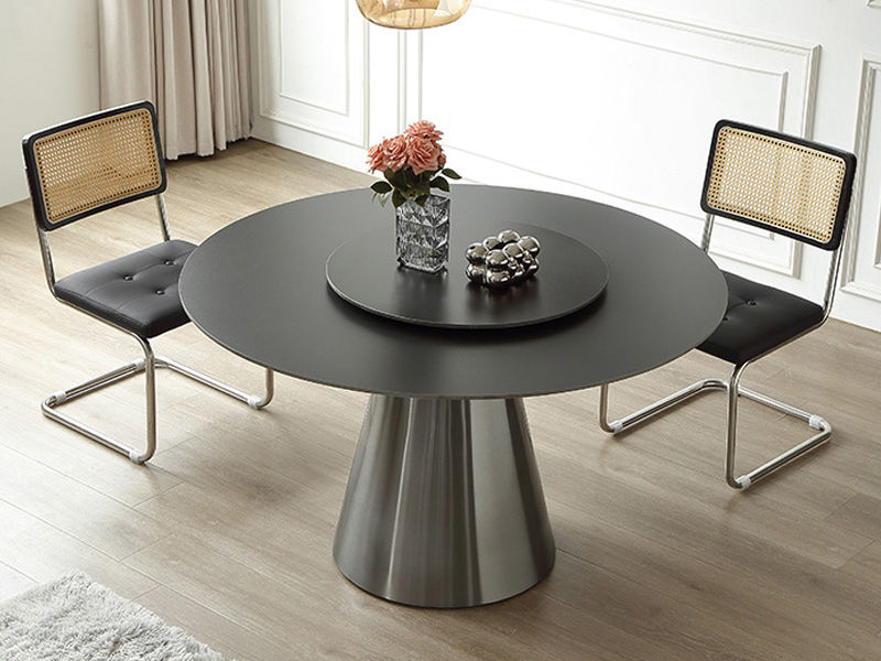 小红书系列 极简 岩板+子弹不锈钢 1.3米 圆餐桌(含转盘)