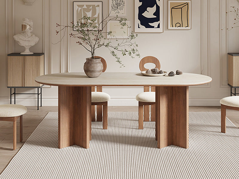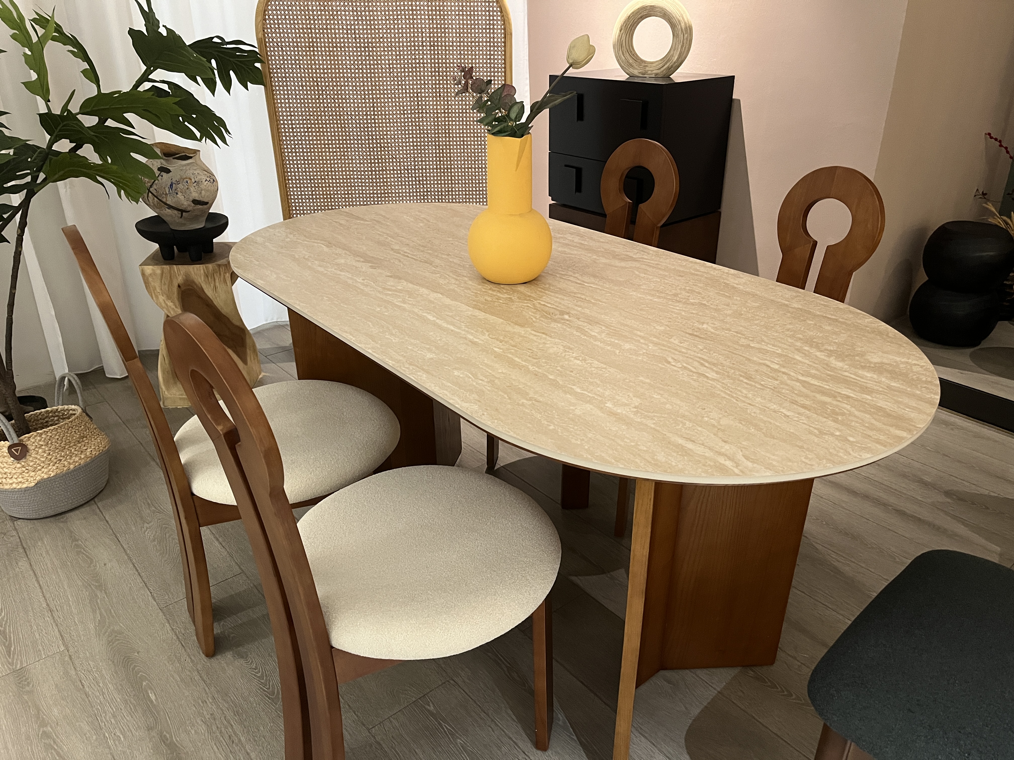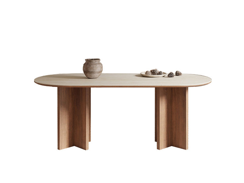 小红书系列 现代 洞石岩板+多层实木板+白蜡木皮 1.3米 长餐桌
