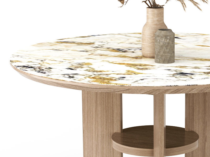 优木集 现代简约 白蜡木+橡胶木+岩板 圆1.2米餐桌