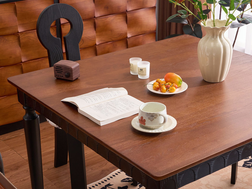 中古·尚 中古风 多层实木板+仿真木皮+碳素钢五金脚(不含转盘) 1.2米餐桌| 商品详情 | 规格参数 | 评价(0) | 购买咨询() | 产品实拍图 | 服务标准 |