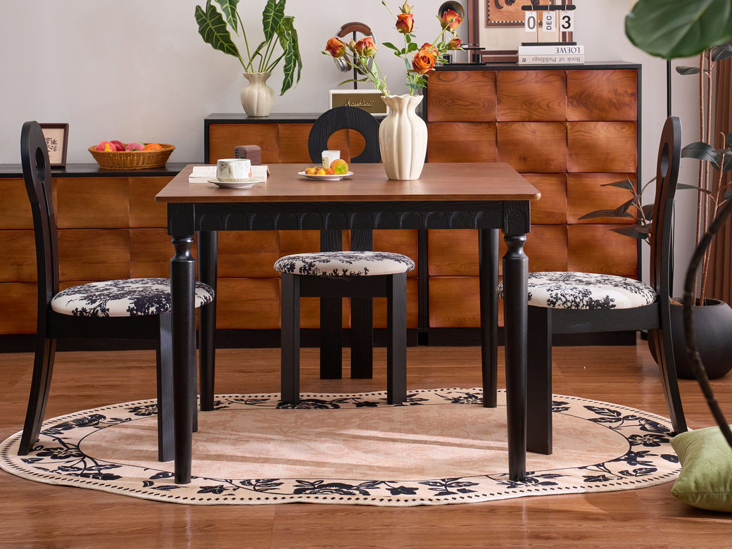 墨云阁 中古风 南美胡桃木+多层实木板 胡桃色 1.3米方桌¥3446