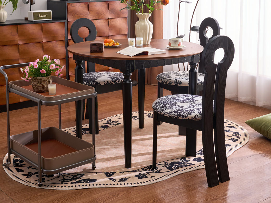 中古·尚 中古风 多层实木板+仿真木皮+碳素钢五金脚(不含转盘) 1.2米餐桌¥8265