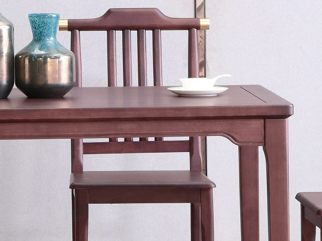 山止 新中式 橡胶木+实木多层板 紫檀色 长1.5米餐桌