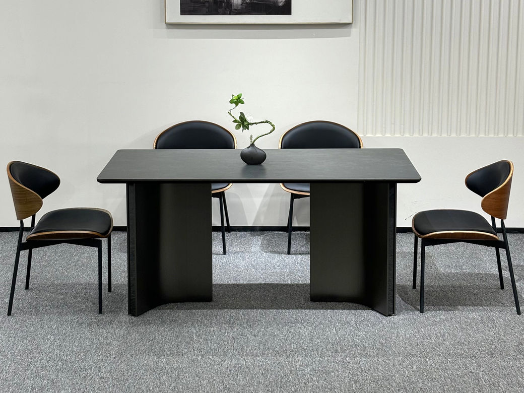 【套餐专享价】每屋优享系列 现代简约 不锈钢脚架+全复合底板固定+微克深灰岩板桌面 方形 1.4米 餐桌