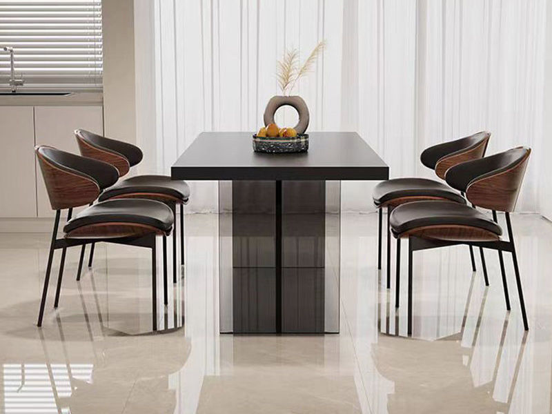 贝斯solo 现代简约 黑亚克力脚架+加厚岩板桌面 方形 1.8米 餐桌