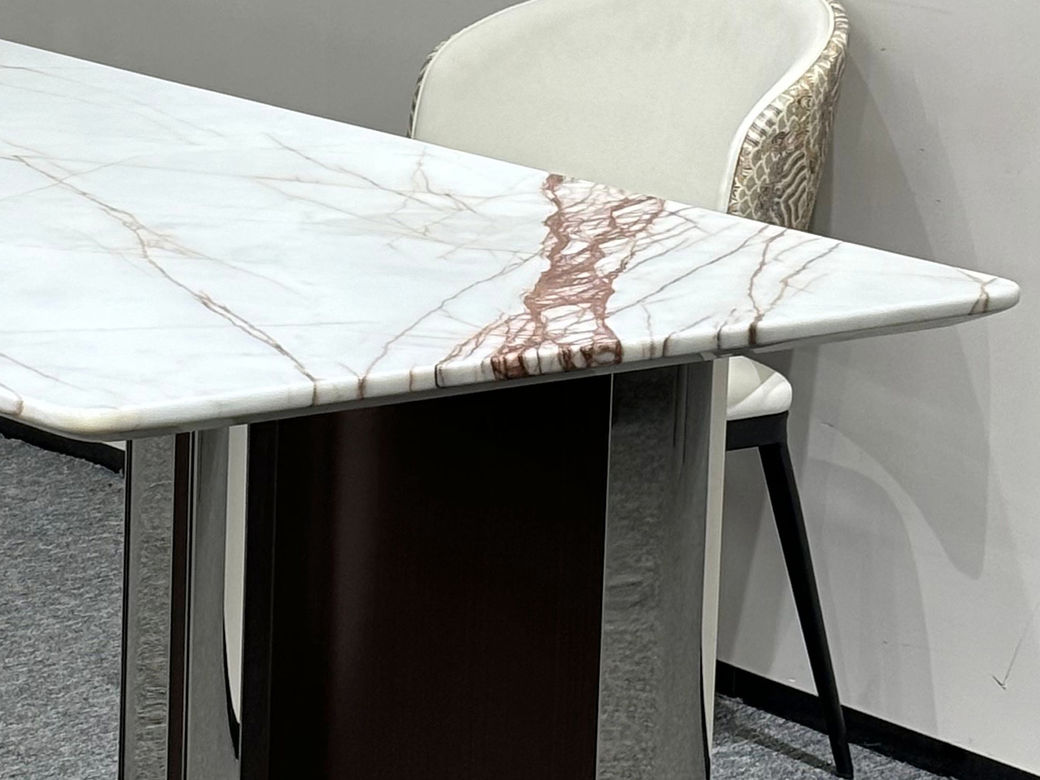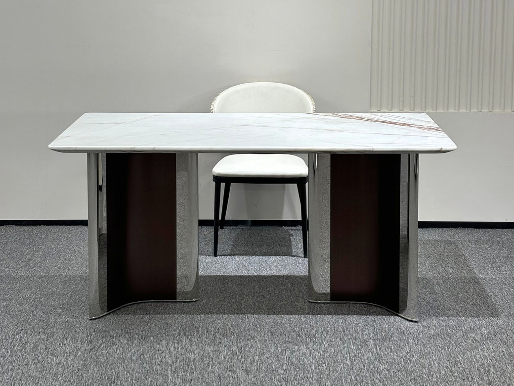 贝斯solo 网红 极简 不锈钢脚架+加厚边皇家白玉奢石桌面 方形 1.6米 奢石餐桌