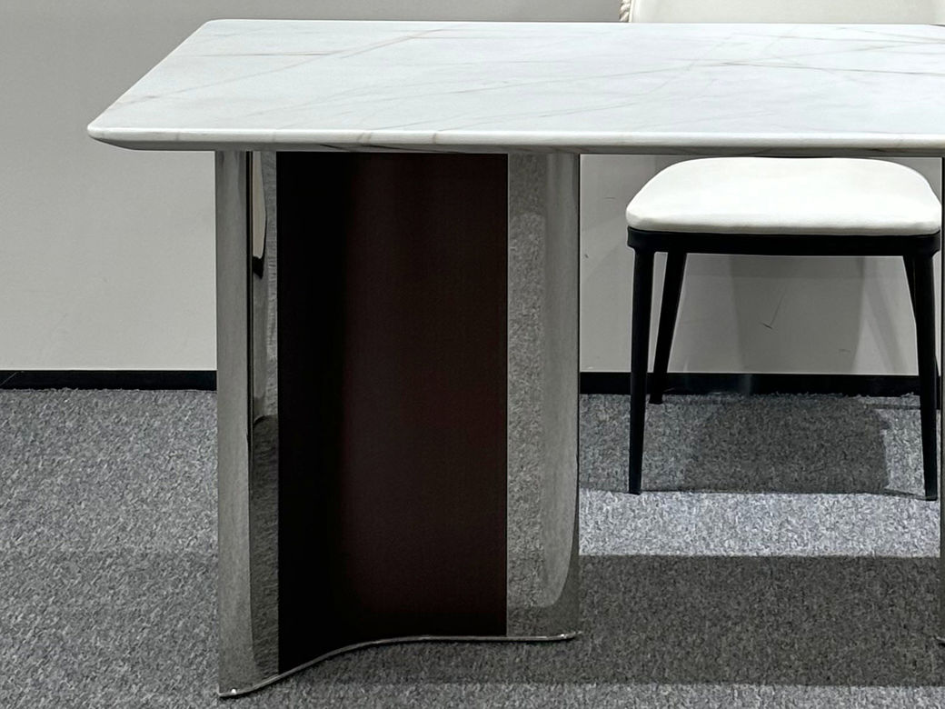 贝斯solo 网红 极简 不锈钢脚架+加厚边雪山飞狐奢石桌面 方形 1.6米 奢石餐桌¥18542