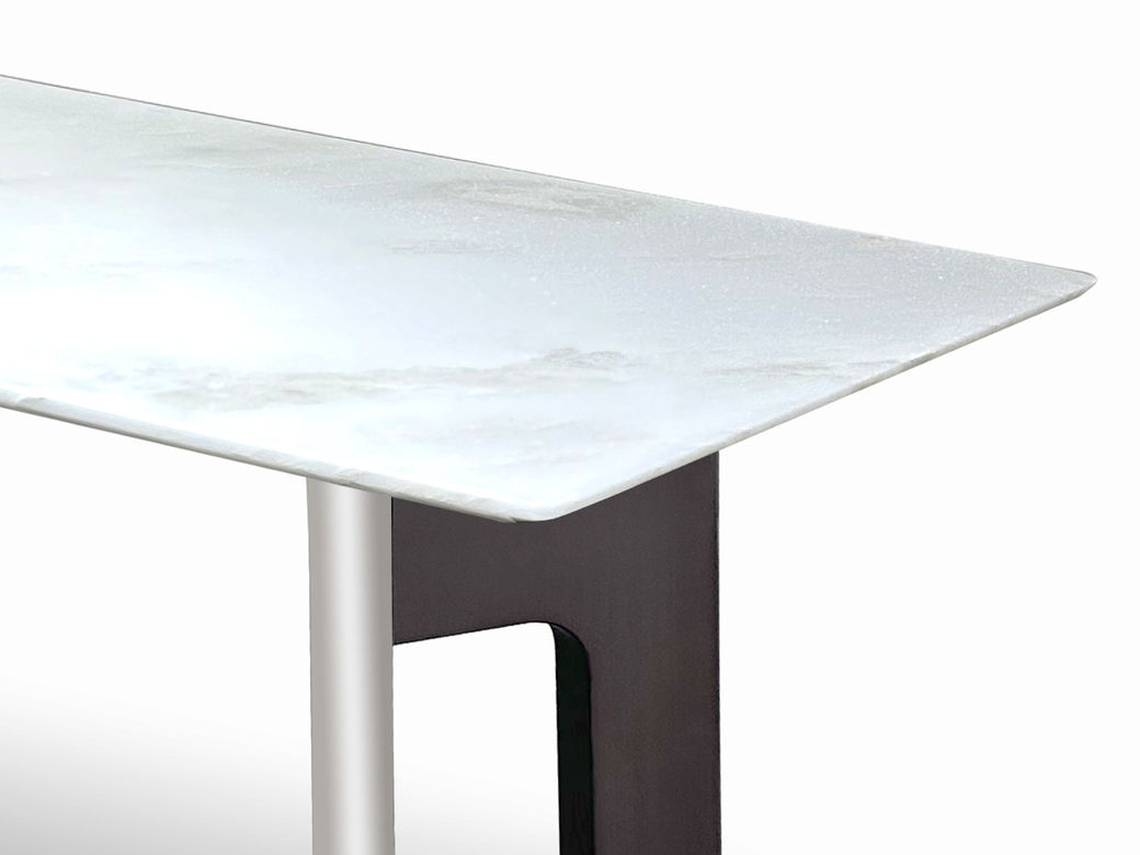 贝斯solo 网红 极简 不锈钢脚架+加厚边皇家白玉奢石桌面 方形 1.8米 奢石餐桌