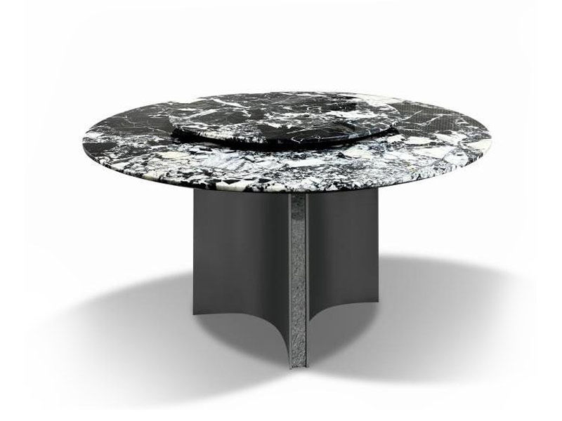 贝斯solo 网红 极简 不锈钢脚架+加厚边宝格丽黑奢石桌面 圆形 1.35米 奢石餐桌