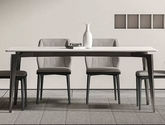 小红书系列 极简 桌面:天然石+绒布底板脚架:不锈钢本色亮色+黑胡桃 1.35米餐桌¥17885