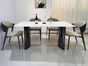 洛萨 现代 不锈钢脚架+木纹+单板+水晶白奢石 1.4米餐桌