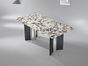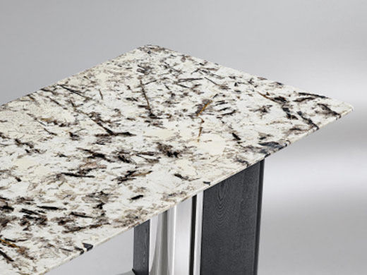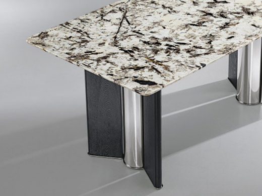 洛萨 现代 不锈钢脚架+实木+加厚边雪山兰奢石 1.8米餐桌