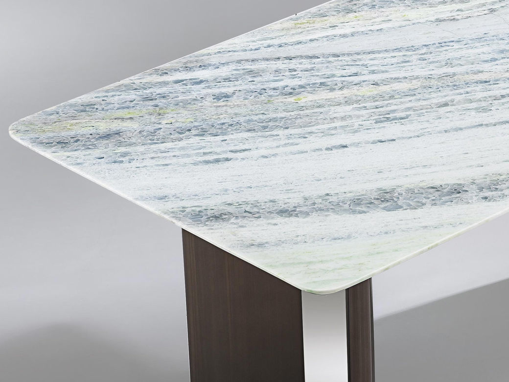 洛萨 现代 不锈钢脚架+加厚边+蓝水晶奢石 1.4米餐桌
