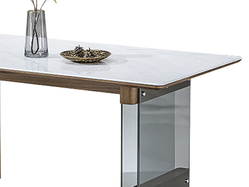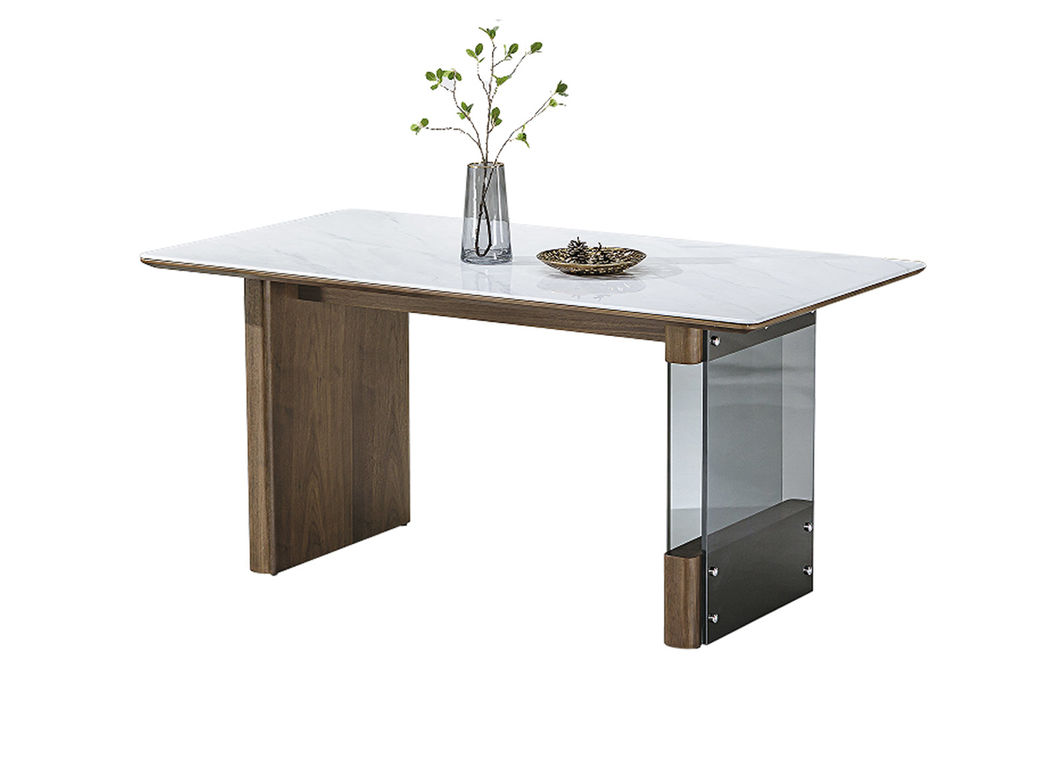 甄品家具 极简 闪电灰微晶石+全托底板+实木夹板贴皮+胡桃色)1.6米餐桌