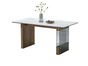 甄品家具 极简 闪电灰微晶石+全托底板+实木弯板+胡桃色 1.6米餐桌¥4791