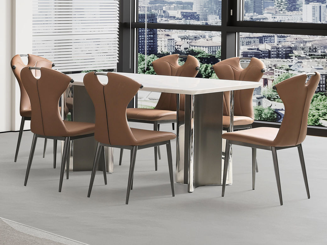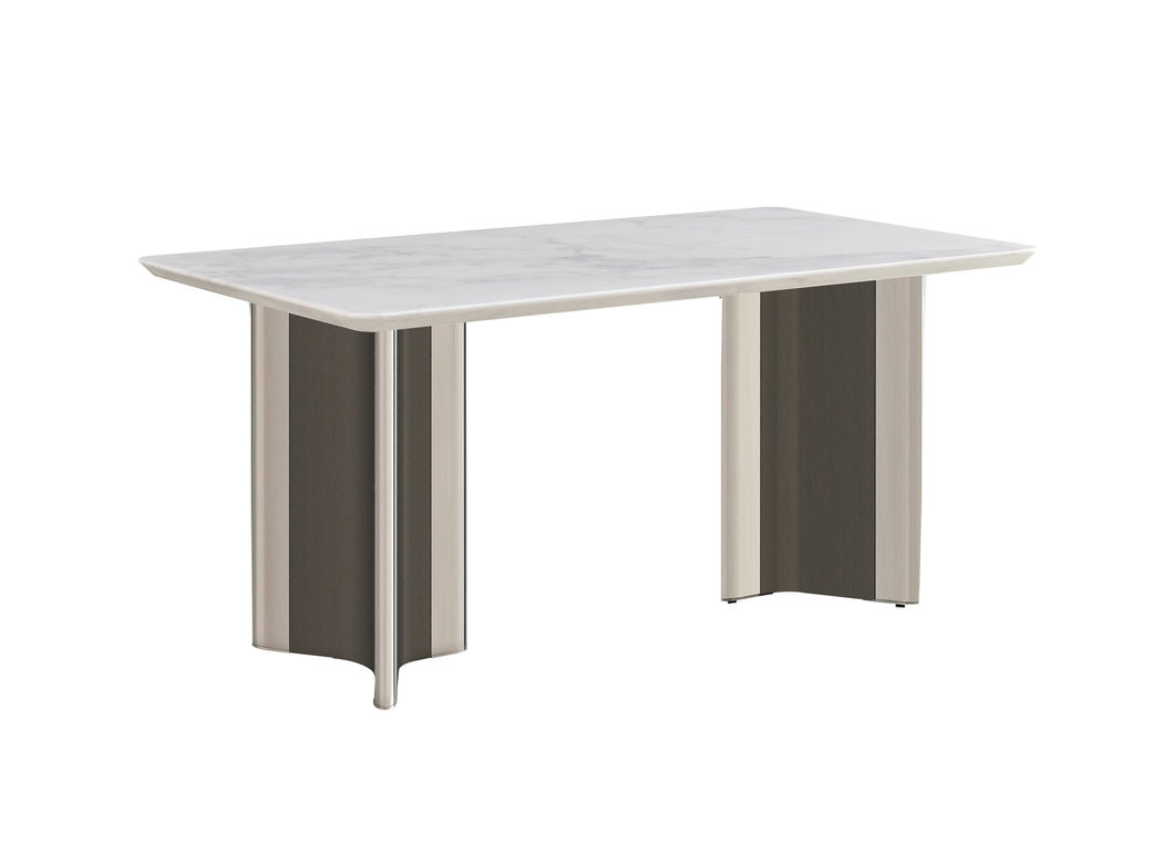 皇朝家居 现代 微晶石爵士白+碳素钢+橡木脚 长1.4米餐桌¥8011