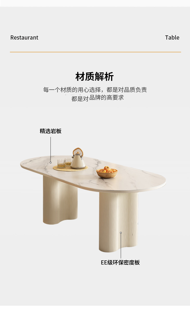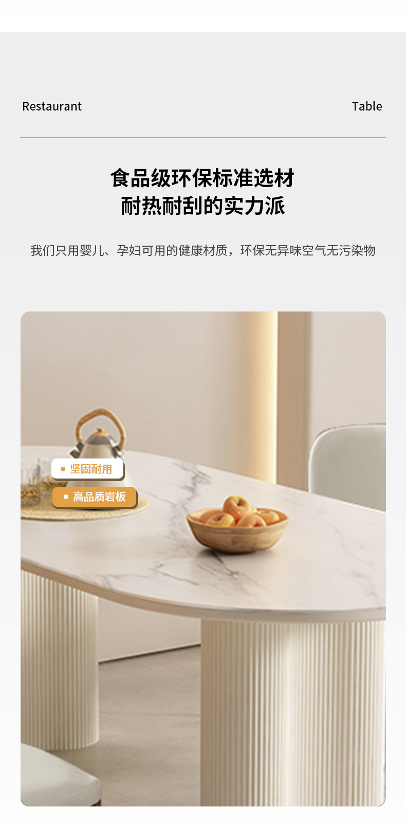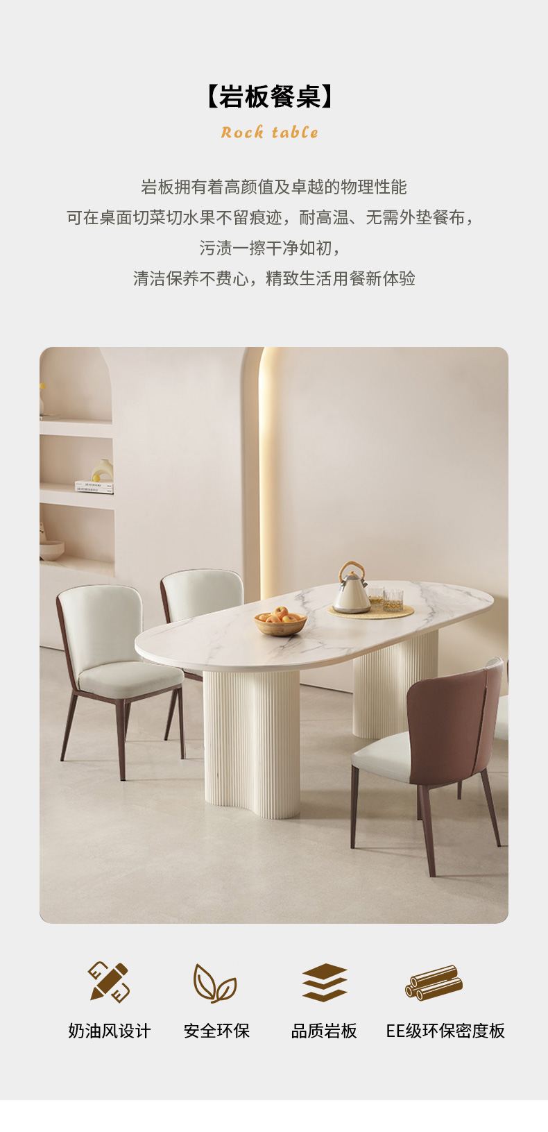 柏思戈 奶油风 岩板+EE级环保密度板 1.4米餐桌