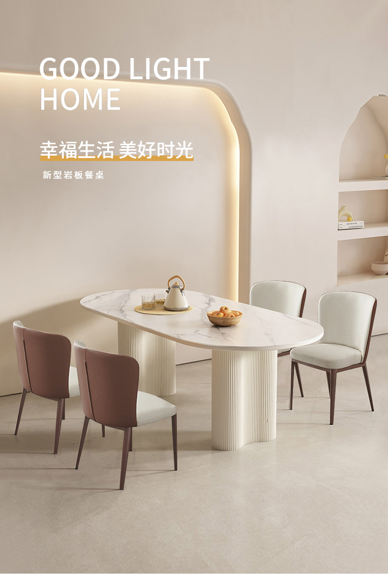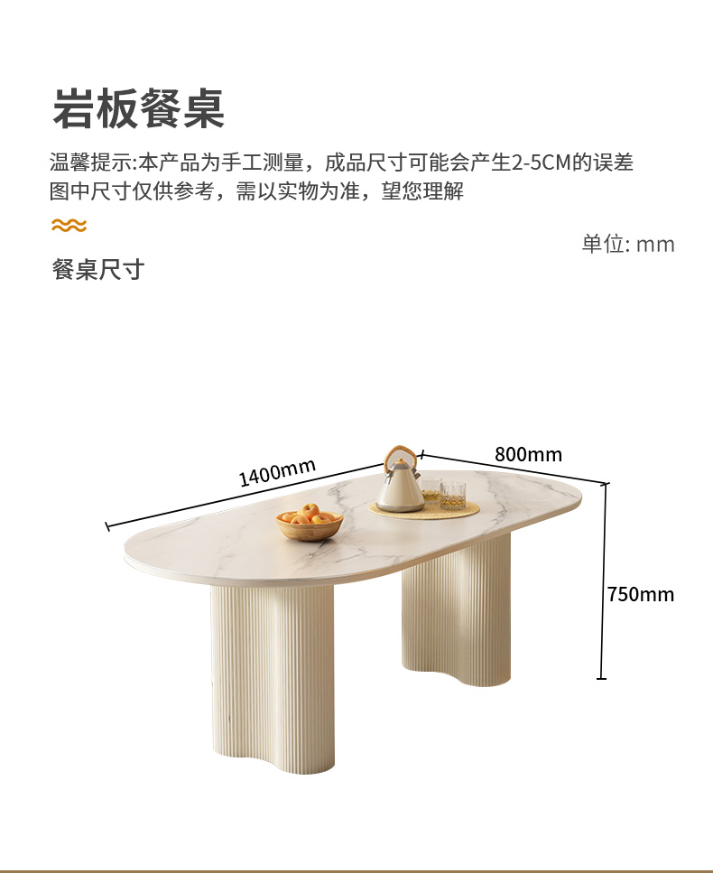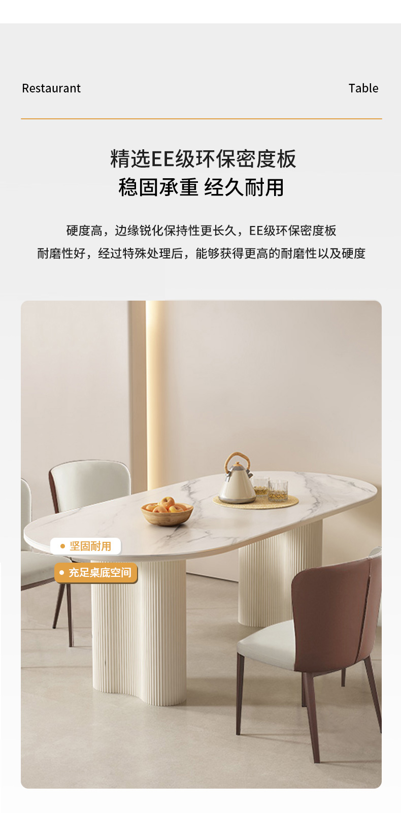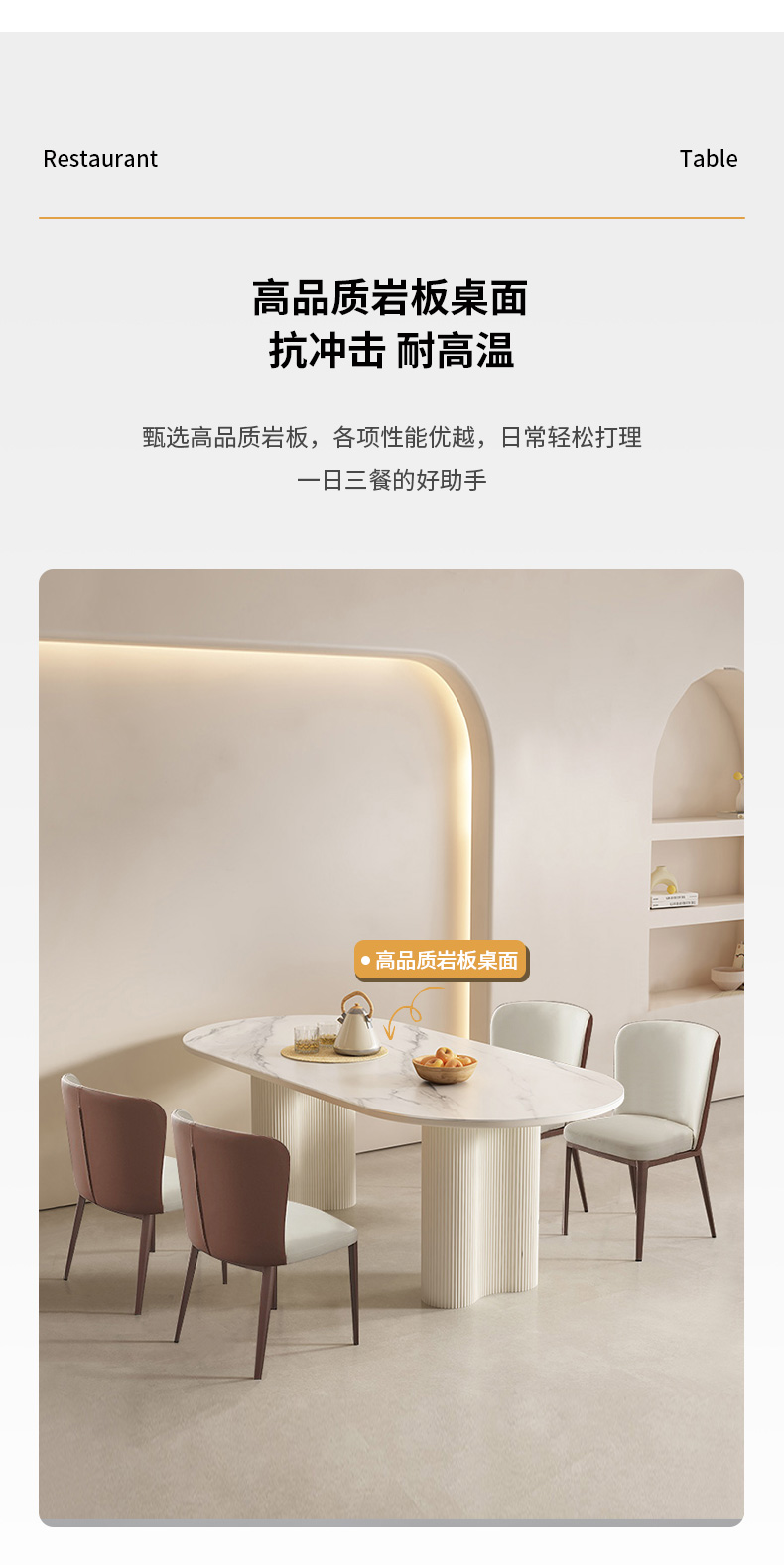 柏思戈 奶油风 岩板+EE级环保密度板 1.4米餐桌