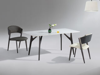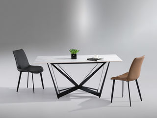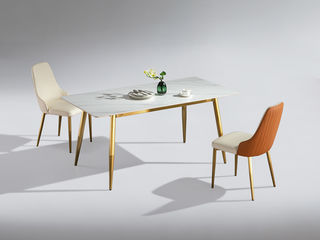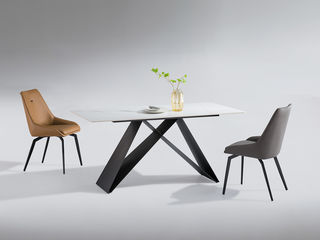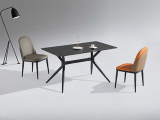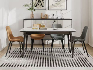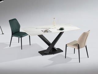 帝幔佧 极简 香奈儿岩板台面/蛇形碳素钢底架 1.4米 长餐桌