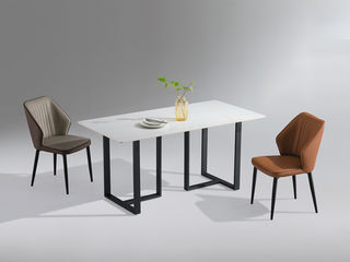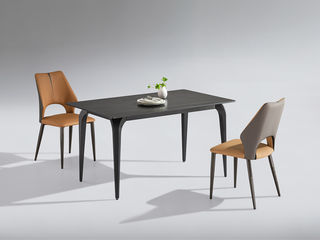洛萨 现代 碳素钢架+哑光岩板面+底板 1.4米 长餐桌