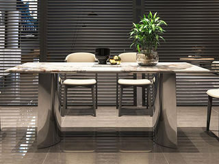 洛萨 现代 不锈钢脚架+木纹+单板+水晶白奢石 1.4米餐桌