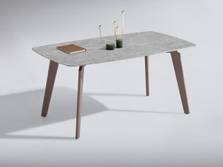 洛萨 现代 超晶石+ 不锈钢架子+木纹贴皮 1.4米餐桌