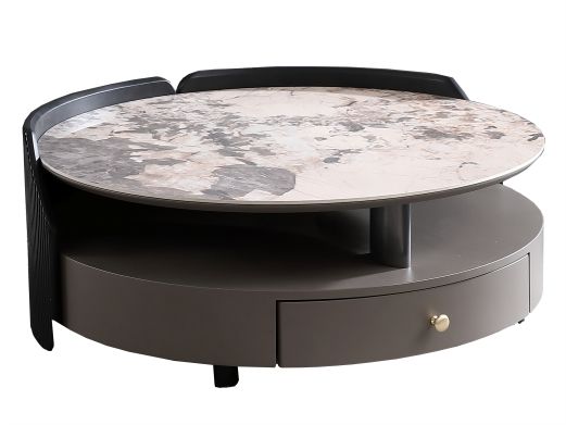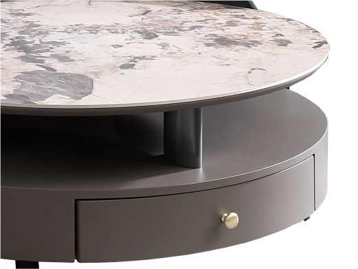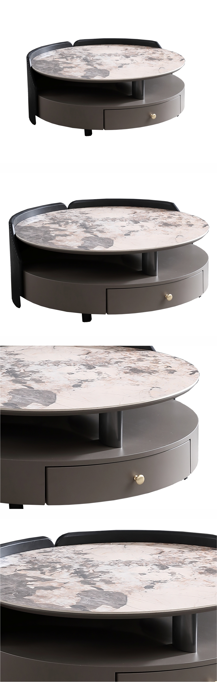 【售完即止】希奥 极简 岩板+五金+木柜 灰色系 0.89米圆形茶几 |