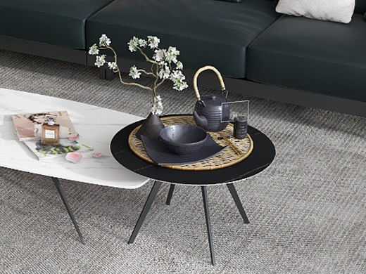 洛萨 极简 岩板面+碳素钢脚 0.8米组合茶几¥4923