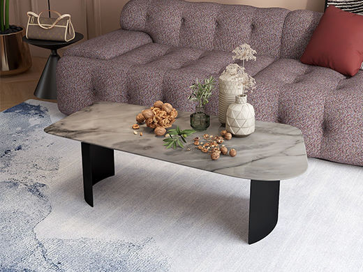 缔造 极简 鱼翅白天然石+碳素钢喷涂脚 1.3米异性茶几