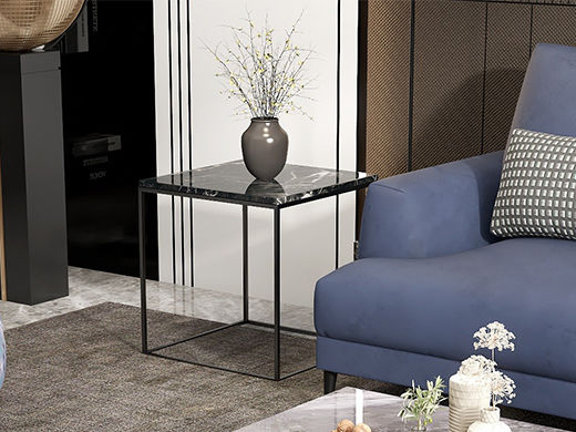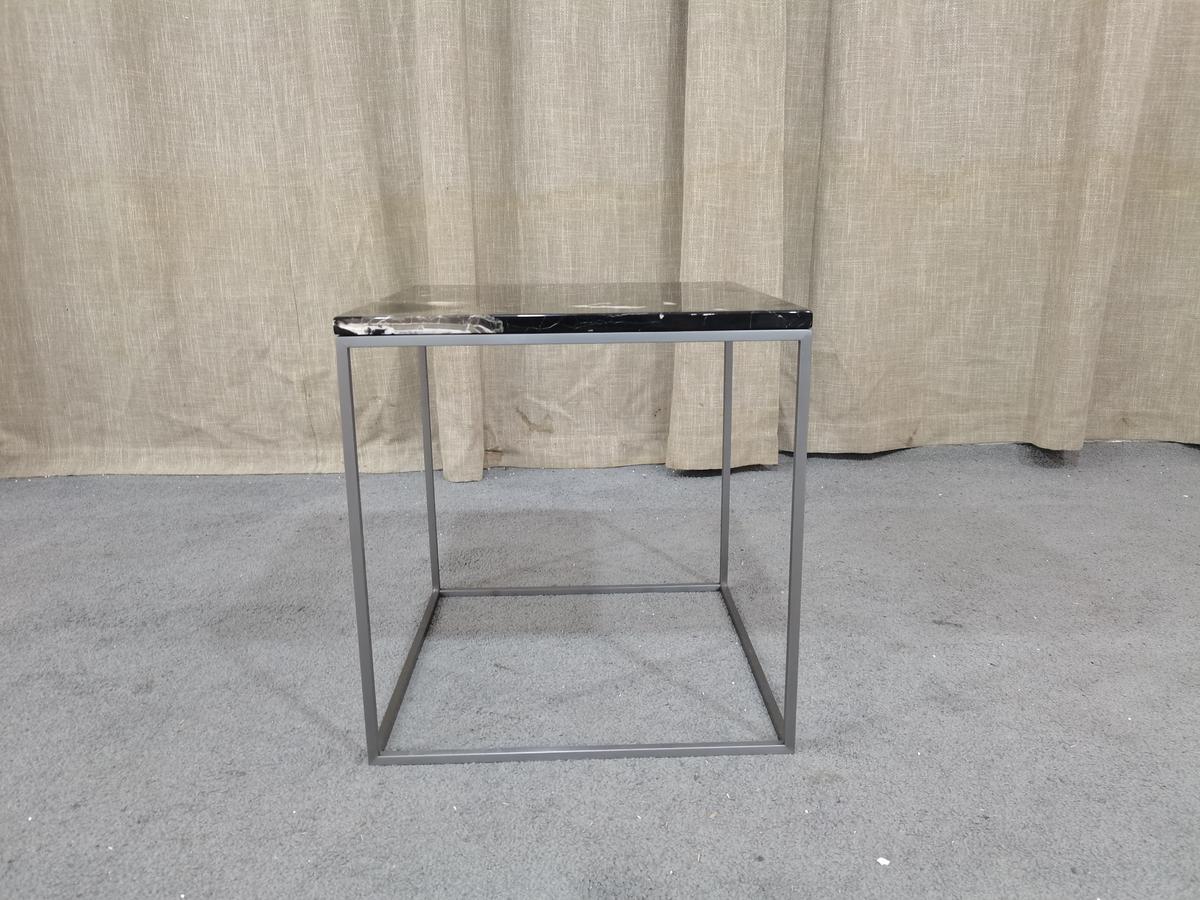 缔造 极简 黑玫瑰天然石+ 不锈钢电镀灰钛拉丝 0.5米边几