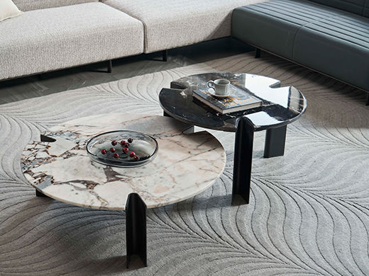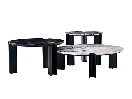 缔造 极简 黑玖瑰天然石面+ 碳素钢喷哑黑色脚 0.8米茶几