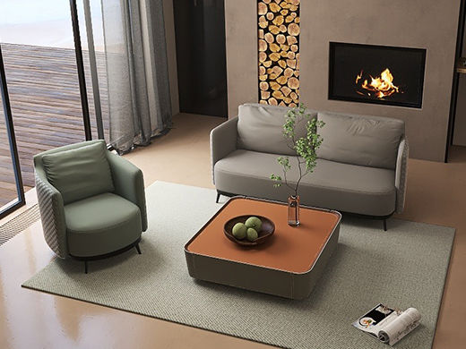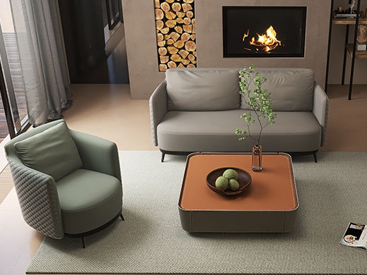 缔造 极简 E1级中纤板扪马鞍硬皮+不锈钢黑钛拉丝底架 1米大方几茶几