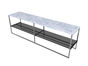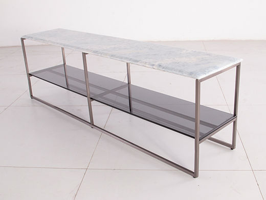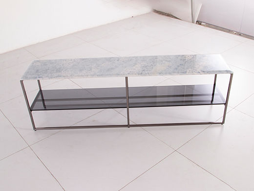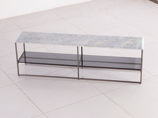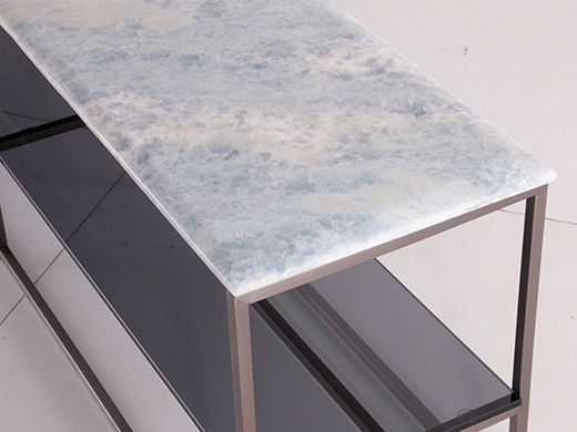 缔造 极简 奢石蓝水晶天然石 + 钢化灰玻 + 不锈钢电镀灰钛 1.6米沙发几背几