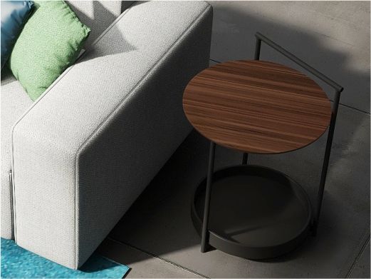缔造 极简 高密度板贴白蜡木皮做碳灰色面+碳素钢喷哑黑色脚 碳灰 0.5米边几
