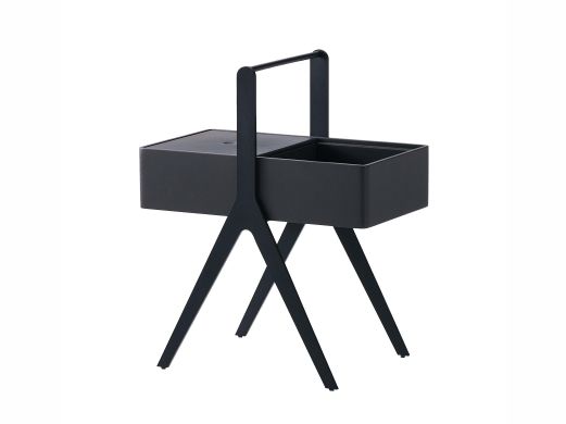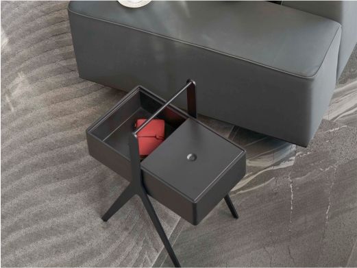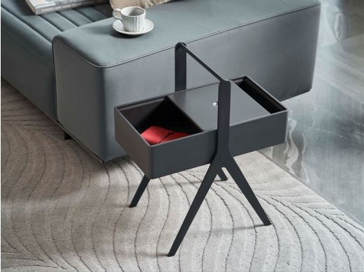 缔造 极简 高密度板贴白蜡木皮做碳灰色面+碳素钢喷哑黑色脚 碳灰 0.5米边几