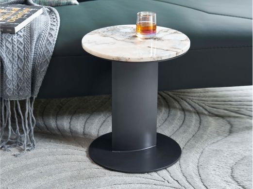缔造 极简 大象白天然石面+ 碳素钢喷哑黑色脚 大象白天然大理石 0.58米边几¥3735