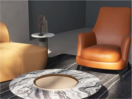缔造 极简 黑玫瑰天然石材+ 碳素钢框架喷涂灰钛色+马铵硬皮 0.625米边几¥4020