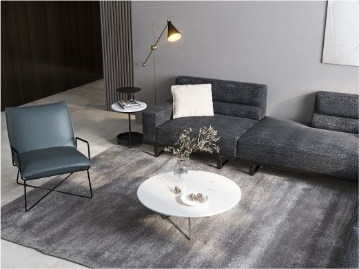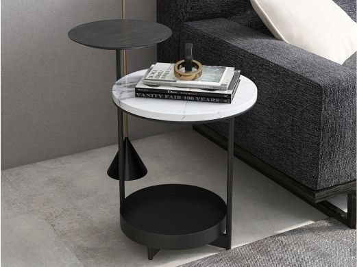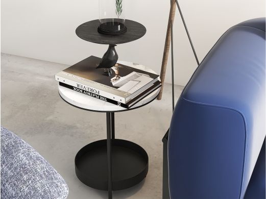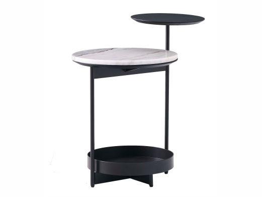 缔造 极简 大象白天然石面+碳素钢喷哑黑色脚 大象白天然大理石 0.4米边几